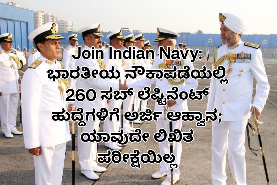 ಭಾರತೀಯ ನೌಕಾಪಡೆಯಲ್ಲಿ ಅಧಿಕಾರಿ ಆಗಬೇಕು ಅನ್ನೋ ಕನಸು ಹೊಂದಿರುವ ಸಾವಿರಾರು ಯುವಕರಿಗೆ 2026ರಲ್ಲಿ ಭರ್ಜರಿ ಅವಕಾಶ ಬಂದಿದೆ. Short Service Commission (SSC) ಮೂಲಕ ಒಟ್ಟು 260 Sub Lieutenant ಹುದ್ದೆಗಳಿಗೆ ನೇಮಕಾತಿ ಅಧಿಸೂಚನೆ ಪ್ರಕಟವಾಗಿದೆ. ಈ ನೇಮಕಾತಿಯ ಅತ್ಯಂತ ದೊಡ್ಡ ಹೈಲೈಟ್ ಏನು ಗೊತ್ತಾ?